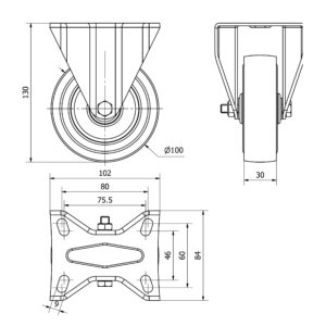 Rueda goma fija Alex diametro 100 mm. modelo 2-1130