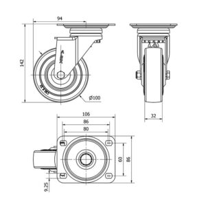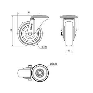 Rueda goma giratoria Alex diametro 100 mm. modelo 2-0265