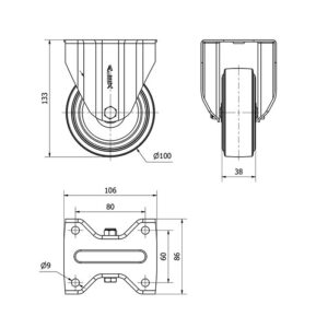 Rueda goma fija Alex diametro 100 mm. modelo 2-3225