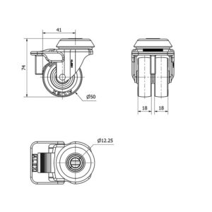Rueda poliuretano giratoria con freno Alex diametro 50 mm. modelo 1-0791