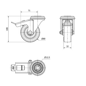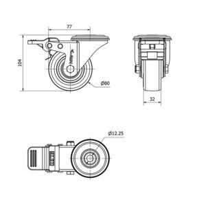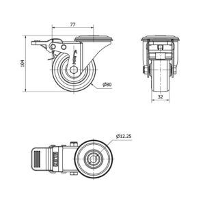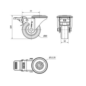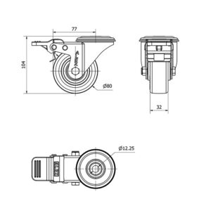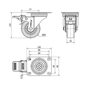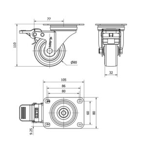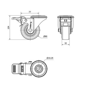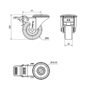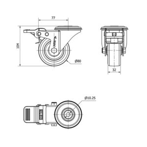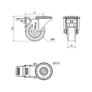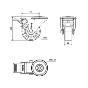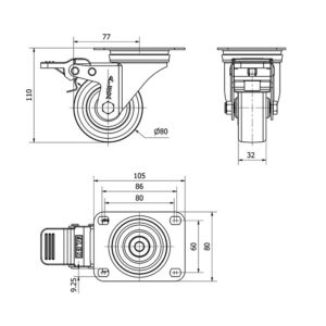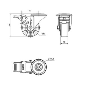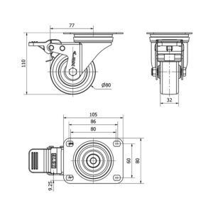 Rueda poliuretano giratoria con freno Alex diametro 80 mm. modelo 2-3104