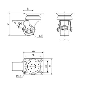 Rueda poliuretano giratoria con freno Alex diametro 35 mm. modelo 2-4667