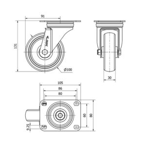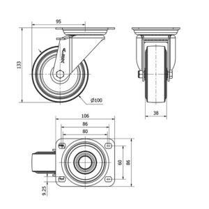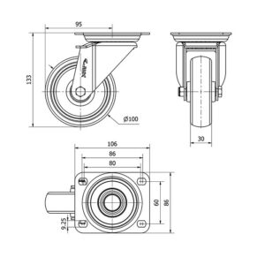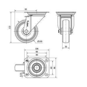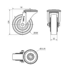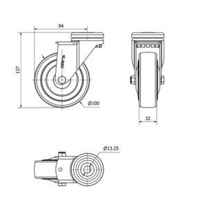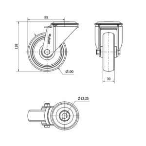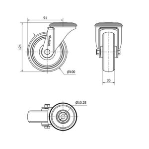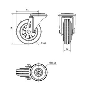 Rueda goma giratoria Alex diametro 100 mm. modelo 2-3213