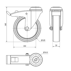 Rueda goma giratoria con freno Alex diametro 125 mm. modelo TW0076