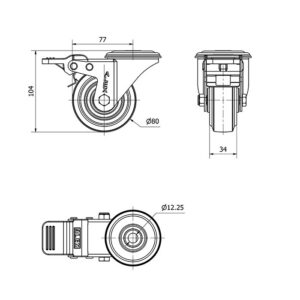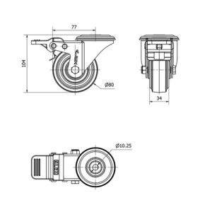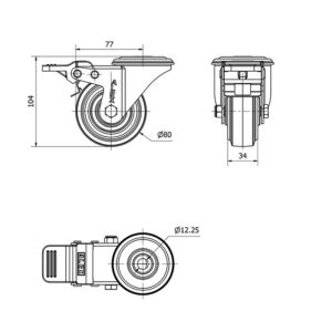 Rueda goma giratoria con freno Alex diametro 80 mm. modelo 2-3755