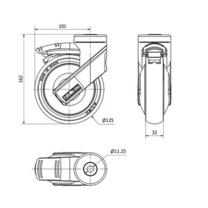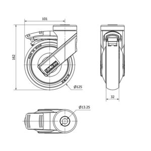 Rueda goma giratoria con freno Alex diametro 125 mm. modelo TW0072