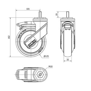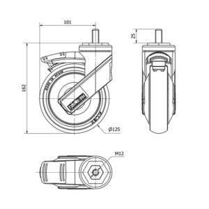 Rueda goma giratoria con freno Alex diametro 125 mm. modelo TW0068