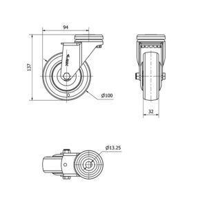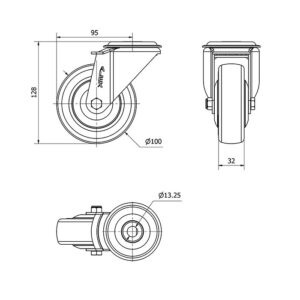 Rueda poliuretano giratoria Alex diametro 100 mm. modelo 2-2023