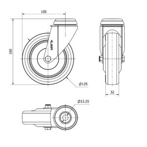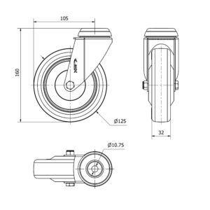 Rueda poliuretano giratoria Alex diametro 125 mm. modelo 2-2469