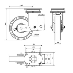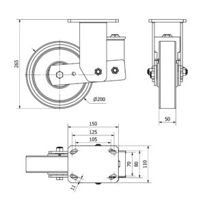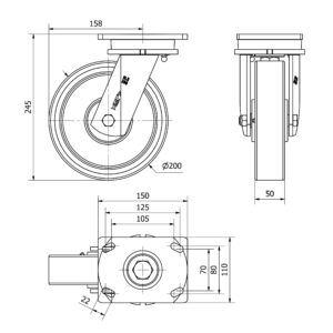 Rueda poliuretano giratoria Alex diametro 200 mm. modelo 2-3940