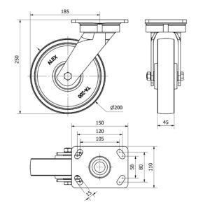 Rueda acero giratoria Alex diametro 200 mm. modelo 4-1134