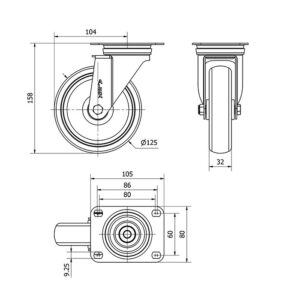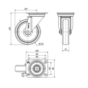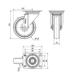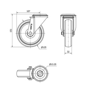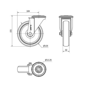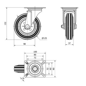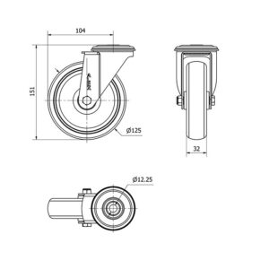 Rueda goma giratoria Alex diametro 125 mm. modelo TW0270