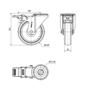 Rueda goma giratoria con freno Alex diametro 125 mm. modelo 2-3257
