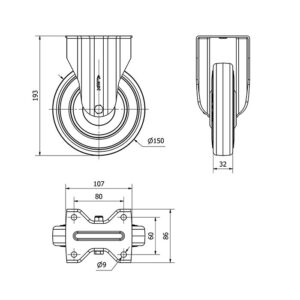 Rueda goma fija Alex diametro 150 mm. modelo 2-3579
