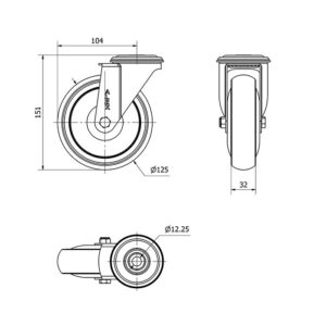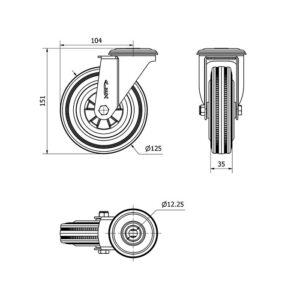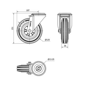 Rueda goma giratoria Alex diametro 125 mm. modelo 2-4828