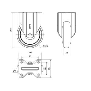 Rueda goma fija Alex diametro 125 mm. modelo 2-2667