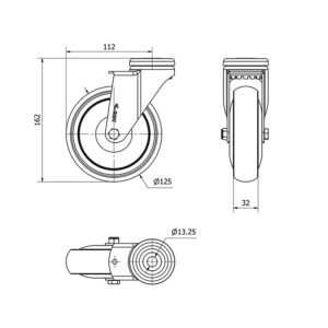 Rueda goma giratoria Alex diametro 125 mm. modelo 2-1343