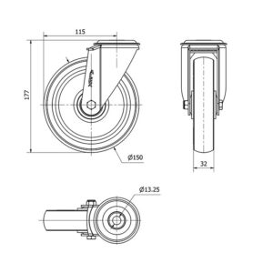Rueda goma giratoria Alex diametro 150 mm. modelo 2-1235