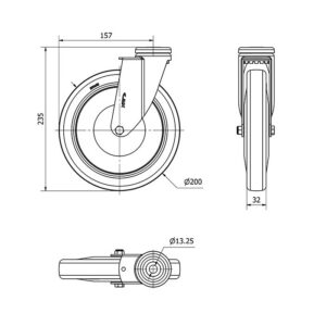 Rueda goma giratoria con freno Alex diametro 200 mm. modelo 2-1568