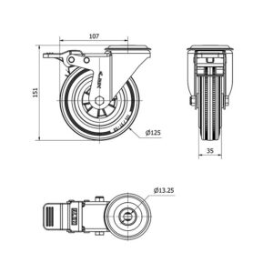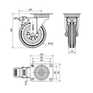 Rueda goma giratoria con freno Alex diametro 125 mm. modelo 2-4925