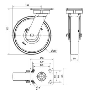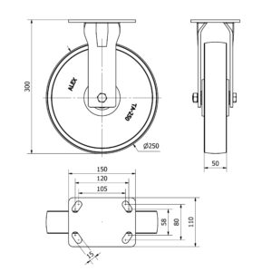 Rueda acero giratoria Alex diametro 250 mm. modelo 4-0382