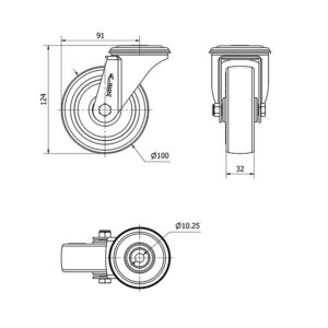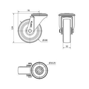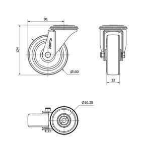 Rueda poliuretano giratoria Alex diametro 100 mm. modelo 2-2825
