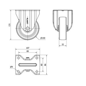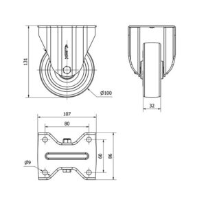 Rueda poliuretano fija Alex diametro 100 mm. modelo 2-2862