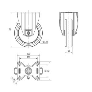 Rueda poliuretano fija Alex diametro 125 mm. modelo 2-3097