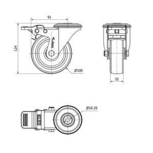 Rueda poliuretano giratoria con freno Alex diametro 100 mm. modelo 2-2379