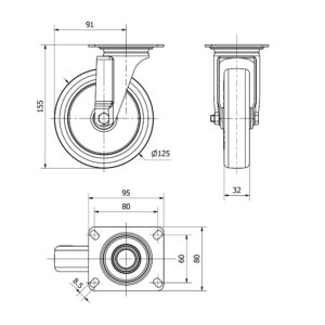 Rueda poliuretano giratoria Alex diametro 80 mm. modelo 2-4655