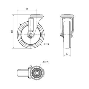 Rueda poliuretano giratoria Alex diametro 125 mm. modelo 2-3103