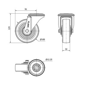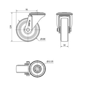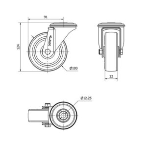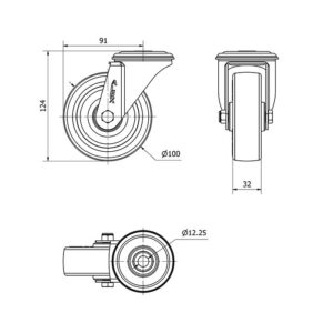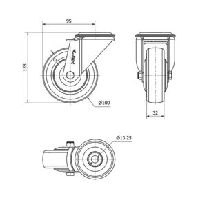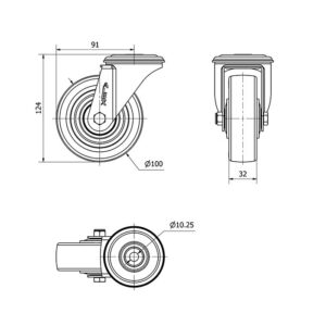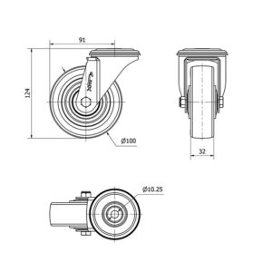 Rueda poliuretano giratoria Alex diametro 100 mm. modelo 2-4232