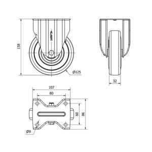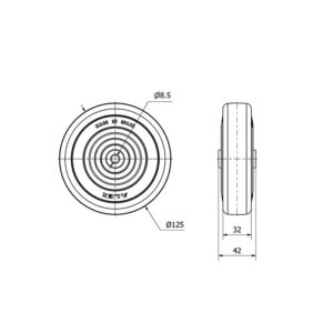 Rueda goma fija Alex diametro 125 mm. modelo 2-2395