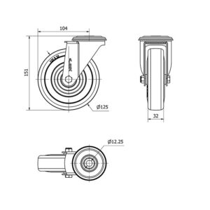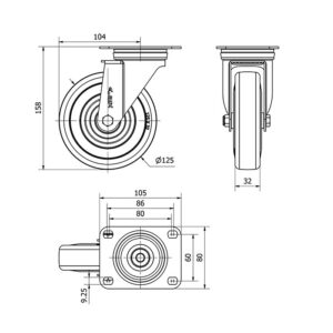 Rueda goma giratoria Alex diametro 125 mm. modelo 2-2407