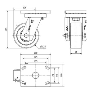 Rueda nylon-poliamida giratoria Alex diametro 125 mm. modelo 2-4421