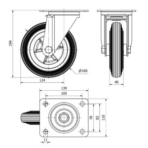 Rueda goma giratoria Alex diametro 160 mm. modelo TW0256