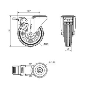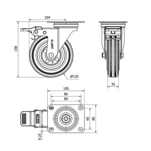 Rueda goma giratoria con freno Alex diametro 125 mm. modelo 2-1150