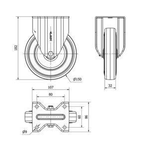 Rueda goma fija Alex diametro 150 mm. modelo 2-4353