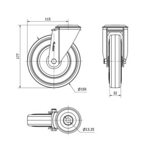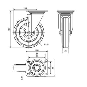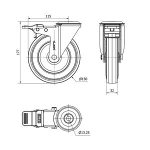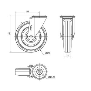 Rueda goma giratoria Alex diametro 150 mm. modelo 2-4350