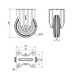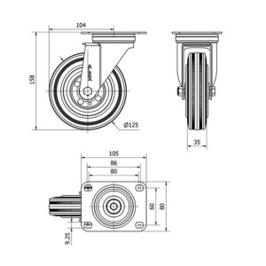 Rueda goma giratoria Alex diametro 125 mm. modelo 2-0227