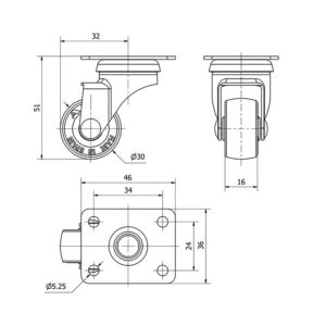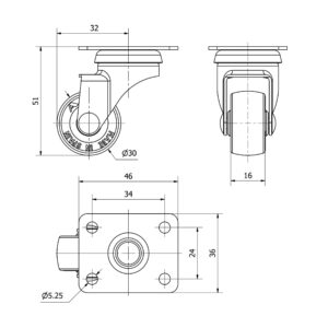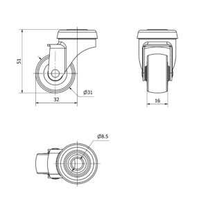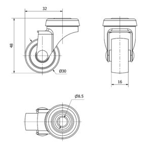 Rueda poliamix giratoria Alex diametro 30 mm. modelo TW0168