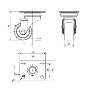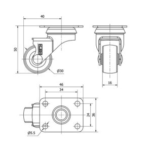 Rueda poliamix giratoria Alex diametro 30 mm. modelo TW0164