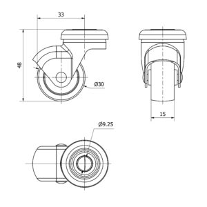 Rueda polipropileno-plastico giratoria Alex diametro 30 mm. modelo 3-0019