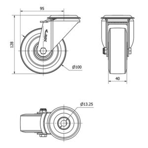 Rueda poliamix giratoria Alex diametro 100 mm. modelo 2-1001