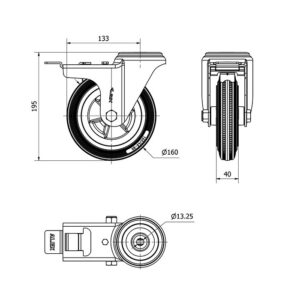Rueda goma giratoria con freno Alex diametro 160 mm. modelo 2-1686