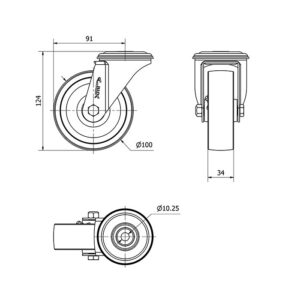 Rueda goma giratoria Alex diametro 100 mm. modelo 2-2743
