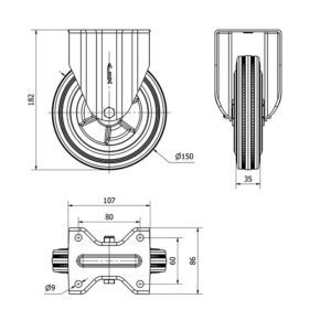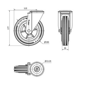 Rueda goma giratoria Alex diametro 150 mm. modelo 2-2888