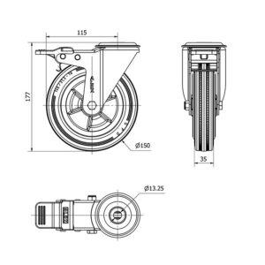 Rueda goma giratoria con freno Alex diametro 150 mm. modelo 2-2887