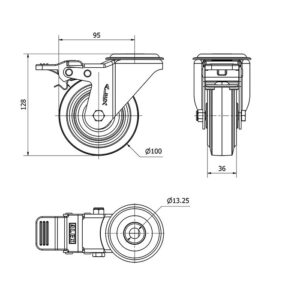 Rueda goma giratoria con freno Alex diametro 100 mm. modelo 2-3765