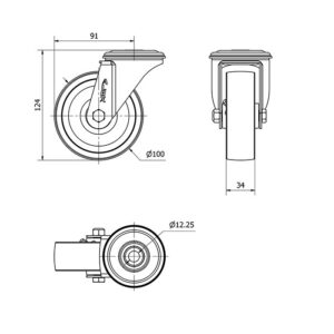 Rueda acero giratoria Alex diametro 100 mm. modelo 2-2507